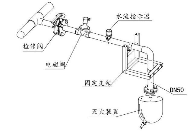 依次按順序安裝檢修閥,電動(dòng)閥,水流指示器,滅火裝置,最后安裝固定支架,當(dāng)然如果你有把握也可以確定位置后首先安裝固定支架。值得注意的是因?yàn)榘惭b環(huán)境不同,固定支架有不同的安裝樣式,需要根據(jù)現(xiàn)場(chǎng)情況選擇最佳的安裝方式。應(yīng)嚴(yán)格按照管路安裝規(guī)范進(jìn)行。